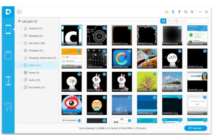 5. Setelah tampilan aplikasi ini terbuka maka anda bisa bebas memilih berbagai jenis file yang ingin anda pulihkan. Misalnya anda ingin mengembalikan foto yang terhapus maka anda bisa memilih “Photos”. Untuk mengembalikan file tersebut maka pilihlah Recover.