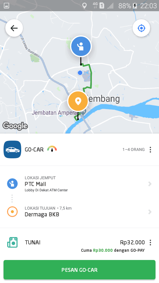 6. Jika dirasa sudah benar semua datanya selanjutnya tekan “PESAN GO-CAR”.